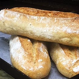 Prodotto con lo stesso impasto della lievitazione naturale, la baguettina biologica viene panificata con l'aiuto di lievito. Rustica e grezza. Ottima con farcitura tradizionale. Realizzata nel formato da 150 gr.